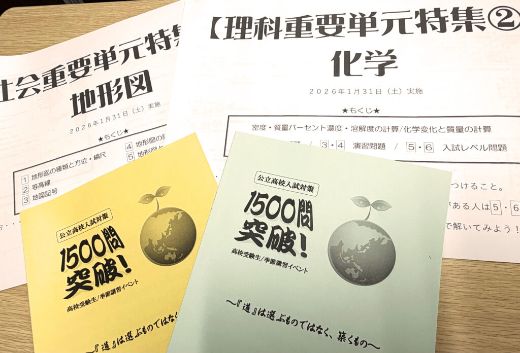 2回目となる今日は理科:化学分野、社会:地形図問題。中々自分では取り組みづらい単元なので良い復習になったと思います。